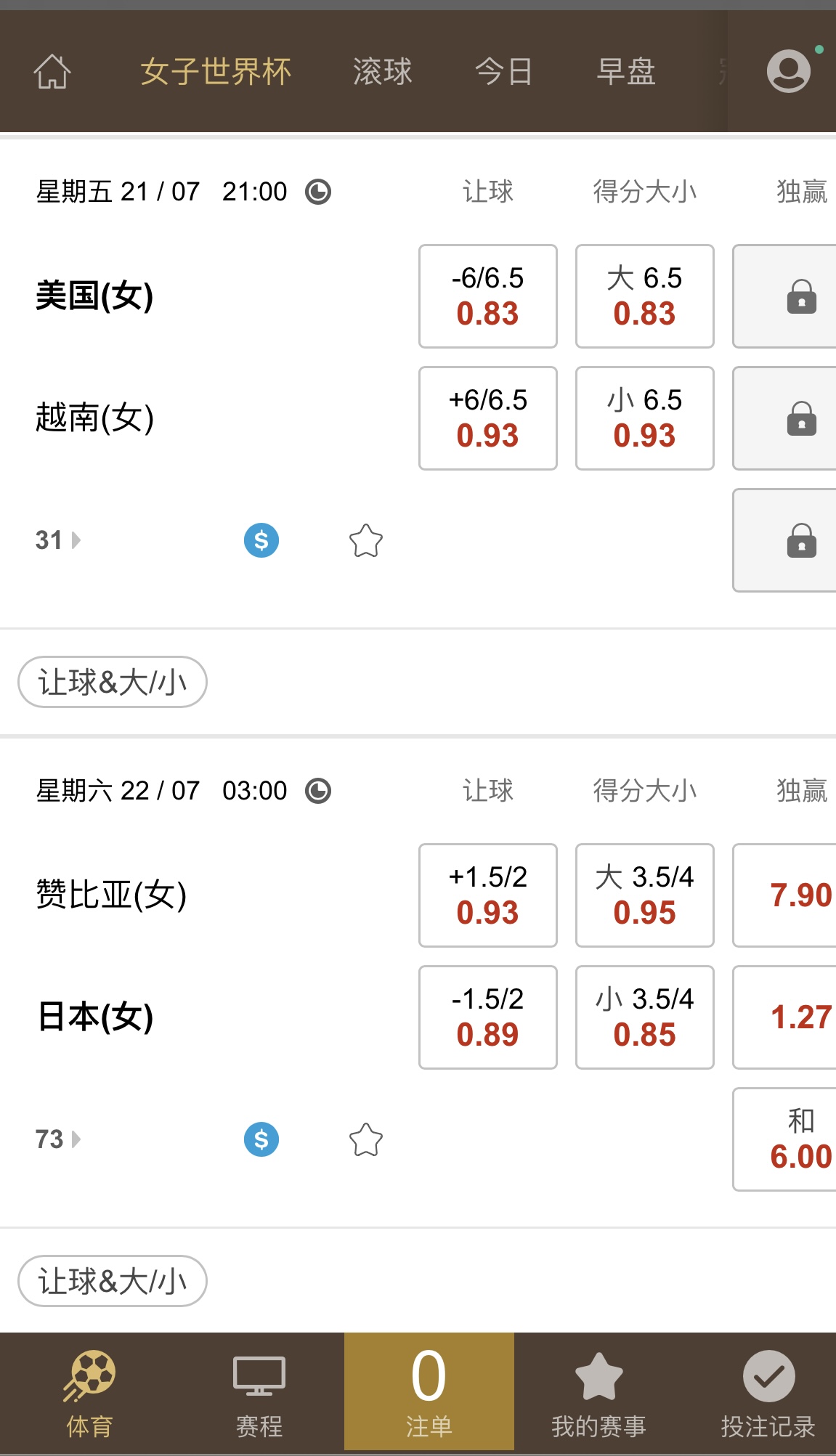 女子世界杯赔率